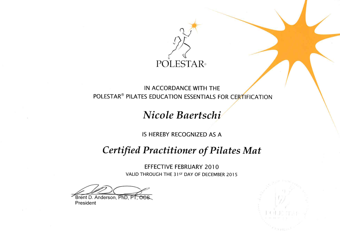 Methodische und didaktische Zertifikation: Certified Practioner of Pilates Mat, Polestar Pilates USA |